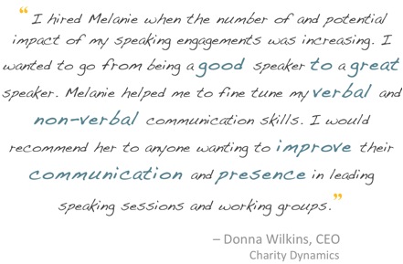 Melanie’s specialty is working with high-potential leaders to market their personal brand and develop their executive communication and influencing skills. She has also created and delivered a wide variety of professional and leadership development programs for all levels of management, including: motivation, communication skills, presentation skills, performance management, talent management, change management, and interviewing skills. For more ways Melanie can help your organization, view Services.